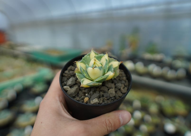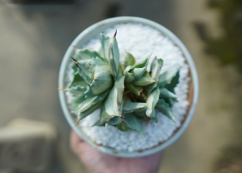 【アガベ】雷神 錦 白中班 石化 レア株 超ボールタイプ アガベ「王妃雷神錦」(”Ouhi Rajin”)白中斑の成長記録&育て方